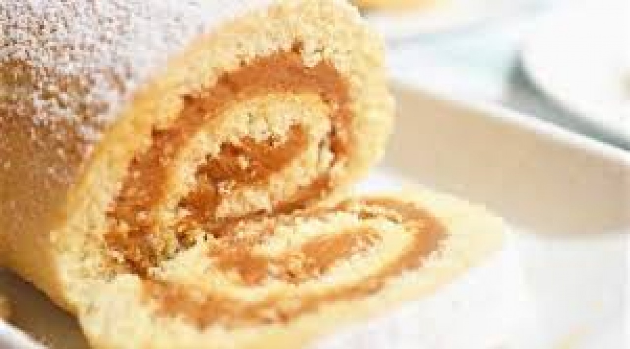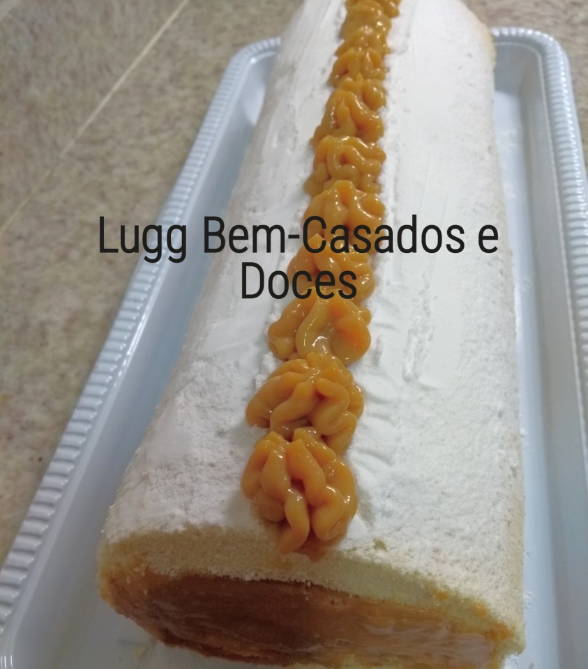 Lugg bem-casados e doces - Rocambole de doce de leite, massa pão de ló, recheio de leite condensado.